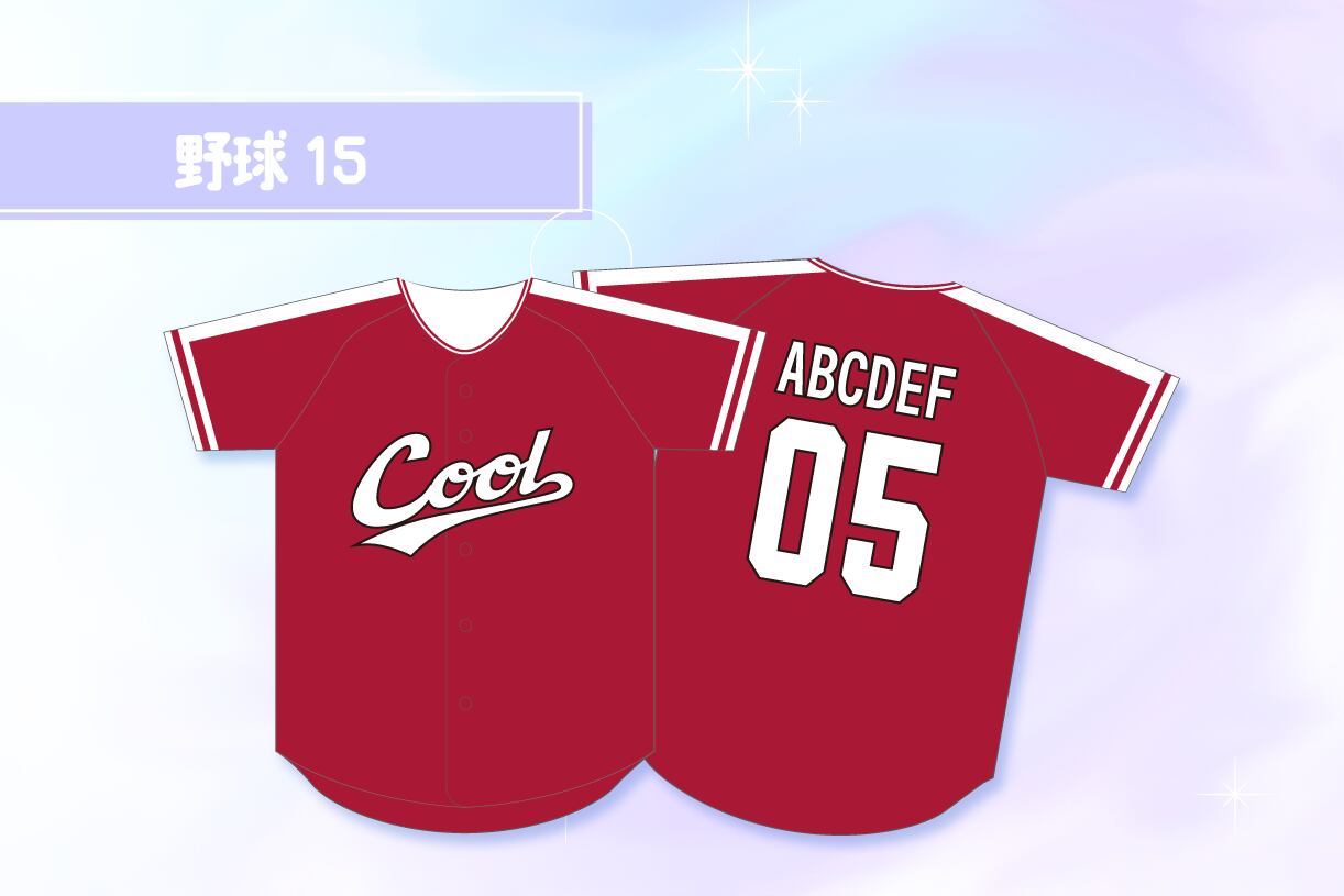 学生の文化祭や体育祭で大人気!トレンドの野球ユニフォーム風の前面ボタン付きクラスTシャツが作成できます。